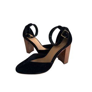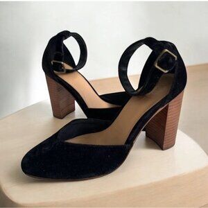 SOLUDOS Black Velvet Ankle Strap Heels Size 7