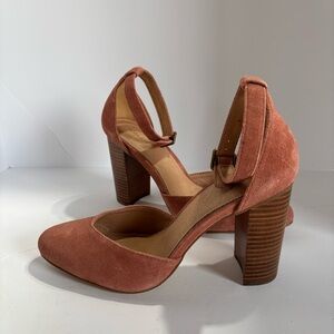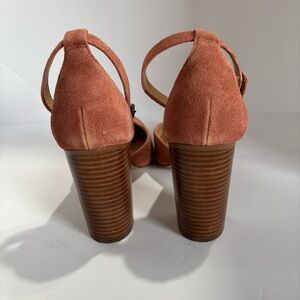 SOLUDOS COLLETTE Pink/Salmon Size 9.5 Suede Heels With Buckle At Ankle;
