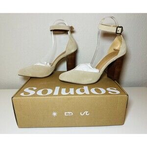 SOLUDOS Collette Suede Beige Block Heel Ankle Strap Sandals Shoes Women's 10 NIB