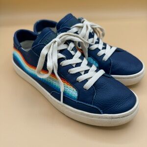 SOLUDOS Ibiza Blue Rainbow Wave Sneakers, Embroidered Leather, Women’s 7, EUC