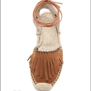 Fringe accents the suede vamp of these flat Soludos espadrilles.
