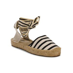 striped design, ankle laces, espadrille trim, woven comfort footbed, lightweight and comfortable, grip sole