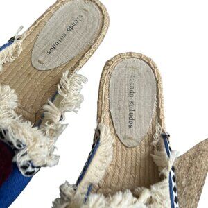 SOLUDOS Tienda Blue Pom Fringe Espadrille Flats Mules Size 8