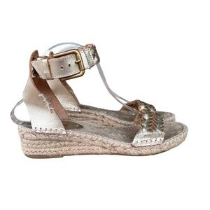 Braided toe and ankle strap. Woven jute wedge. Never worn. Heel approx 1.75”