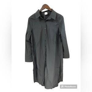 SOLUTION Black design on back Button Down slide split to half tuck NWT
