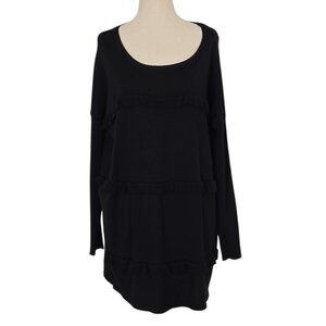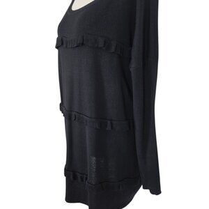 SOLUTIONS Black Ruffle Trim Long Sleeve sweater tunic Size Medium NWOT