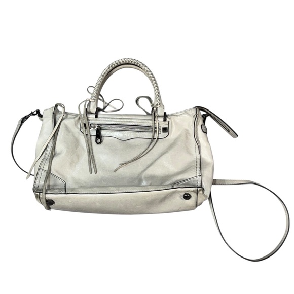 This Rebecca Minkoff off white leather handbag with silver accents is giving Balenciaga City bag.