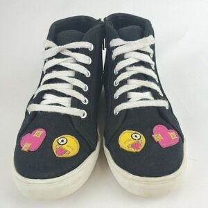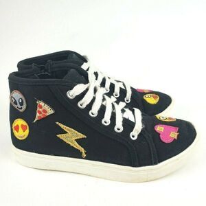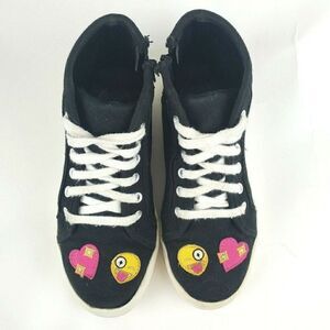 SO Linden Girls Emoji Patches Black High Top Sneakers Canvas Laces Zip Up sz 3