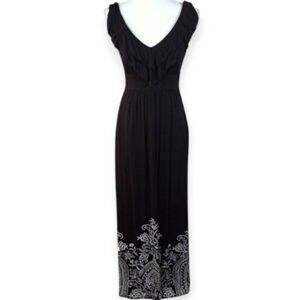 SOMA BLACK & WHITE V-NECK RUFFLE MAXI DRESS SZ.XS EUC.