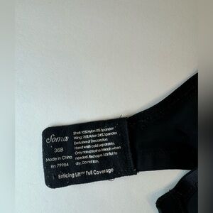 SOMA Black Lace Enticing Lift Full Coverage 36B Bra