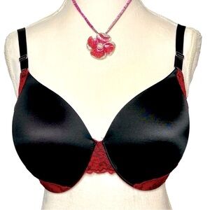 SOMA Bra Vanishing back Full coverage Underwire Floral lace Black Red 38DD/38E