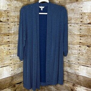 SOMA SUPER SOFT OPEN FRONT LONG SLEEVE STRIPED CASUAL CARDIGAN. MEASURES FROM PIT TO PIT ARE AN EST DO TO THE DIFFERENT WAYS IT COULD ME MEASURED. I MEASURED WITH BOTH OPEN FRONT SIDES JUST TOUCHING EACH OTHER. NO FLAWS. SEE PIC FOR MATERIAL TAG. OFFERS WELCOME.
