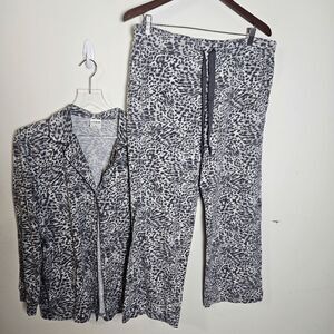SOMA Long Sleeve Button Down and Pajama Pants Leopard Print Sleepwear Women's Bl