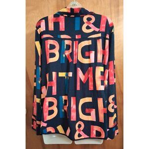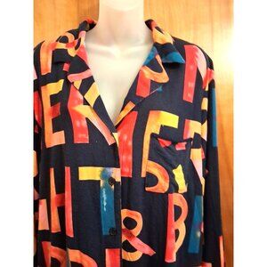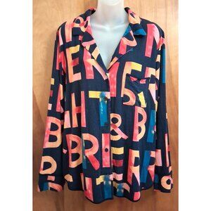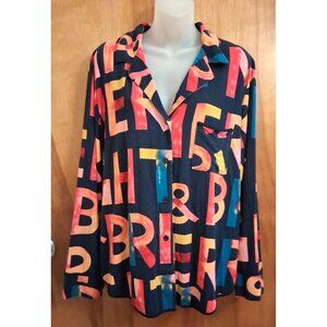 SOMA Pajama Top multi-color Print XL Long Sleeve Soft Knit Button Down Blue