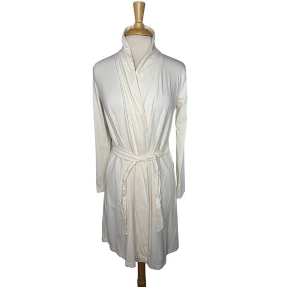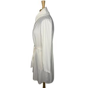 SOMA Restore Aloe Knit Short Robe in Ivory. Size Small Womens. Cotton-Rayon-spandex blend. Attached belt. Excellent condition — no rips, stains, or holes. Retail: $76.