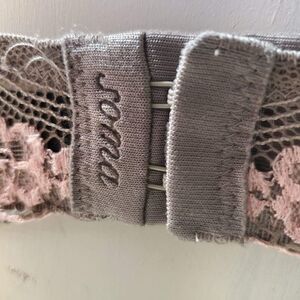 SOMA SEXY TAUPE WITH PINK TRIM LACY UNDERWIRE BRA, SIZE 34C