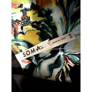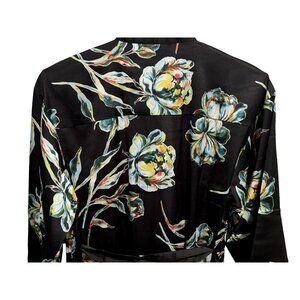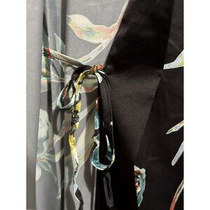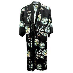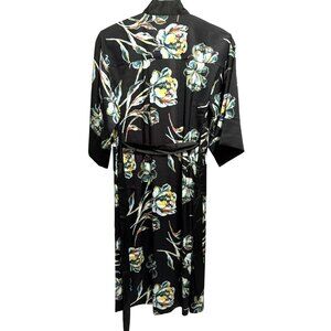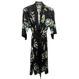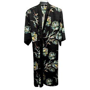 SOMA Satin Kimono Robe Impressions Floral Black Midi Wide Flowy Sleeves Sz S/M