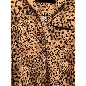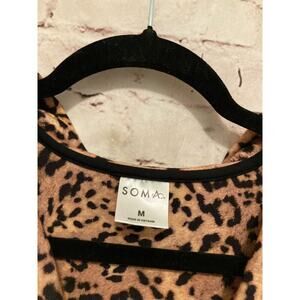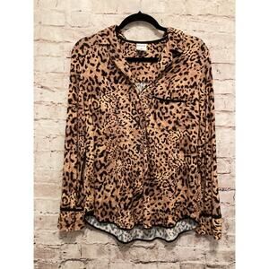 SOMA Sleep Shirt Womens Medium Brown Animal Print Button Front Pocket Stretch