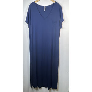 SOMA cool nights Blue V-Neck short Sleeved XXL Nightgown maxi long slit plus
