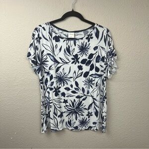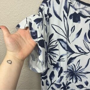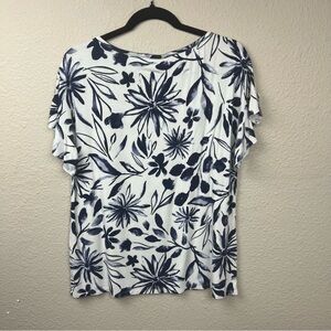 SOMA soft jersey flutter sleeve top voyage floral bright white sz M
