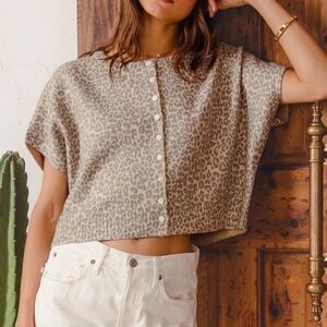 SO ME Leopard Print Button Front Sweater Boxy Crop Top Women's Cardigan Small