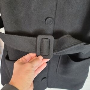 SOMETHING NAVY BLACK WOOL BLEND PEA COAT W BELT, SZ SMALL
