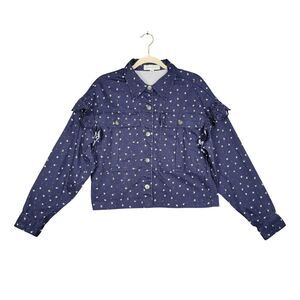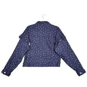 SOMETHING NAVY Celeste Blue Floral Ditsy Eyelet Ruffle Detail Jacket SIZE MEDIUM