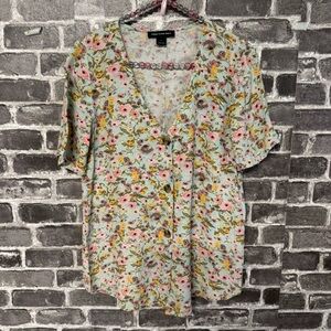 SOMETHING NAVY Easy Woven Top In Teal Romantic blouse button front shirt