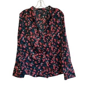 SOMETHING NAVY Floral Multicolor Rosebud Draped Wrap Front Blouse M