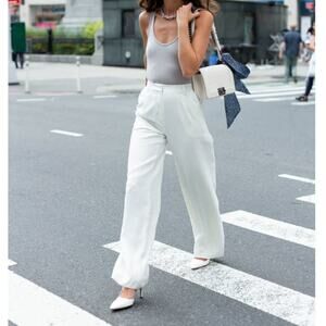 Elevate your wardrobe with these chic SOMETHING NAVY wide-leg trousers! These trousers are brand new with tags and ready to wear. The sophisticated ivory color combination makes them perfect for any occasion.