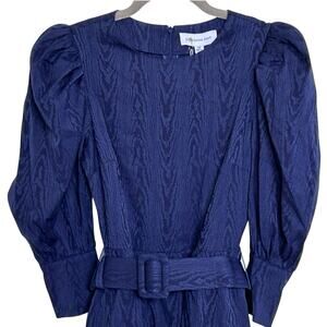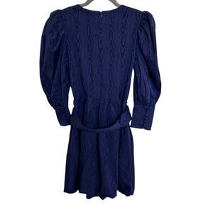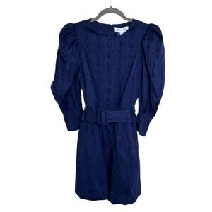 SOMETHING NAVY Mila Puff 3/4 Sleeve Belted Bubble Skirt Mini Dress in Blue-Size XS