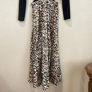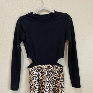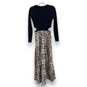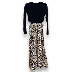 SOMETHING NAVY Tara Long Sleeve Cut Out Leopard Print Maxi Dress Black/Brown S