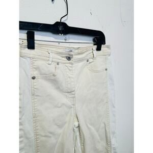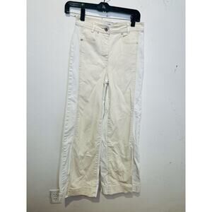 The SOMETHING NAVY White Two-Tone Jeans in Size 25 bring a bold, fashion-forward twist to classic denim. Crafted from soft cotton, they feature an extra-wide flare silhouette that makes a statement while offering a comfortable fit. The two-tone design adds contrast and visual interest, giving these jeans a modern edge. A high-rise waist enhances the flattering shape, while traditional five-pocket styling and a zip-fly closure keep the look timeless. Perfect for pairing with fitted tops or tucked-in blouses, these jeans blend retro flair with contemporary style.