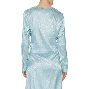 SOMETHING NEW Blue Topaz Mia Leopard Print Satin Wrap Top And Skirt Set M