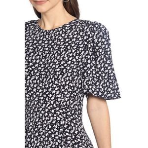 The dainty blooms patterning this midi hold their own with the swingy, strong-shouldered cut, delightfully defining a dress destined to be a wardrobe classic.