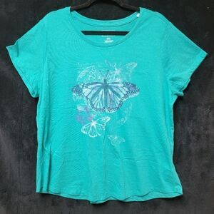 SOMOMA TURQUOISE BUTTERFLY CREWNECK T-SHIRT, SIZE XXL