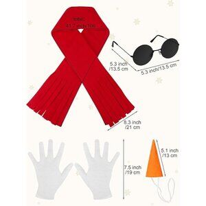 • Includes hat, scarf, shirt, gloves, sunglasses, pipe, and carrot nose