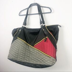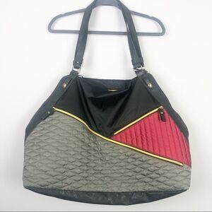 SONDRA ROBERTS | Quilted Tote Bag Purse Red Black Gray Gold Zippers