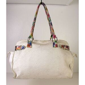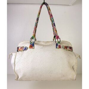SONDRA ROBERTS SNAKE EMBOSSED WHITE GENUINE LEATHER HOBO TOTE SHOULDER BAG PURSE