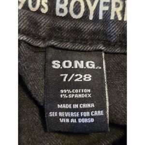 S.O.N.G 90s Boyfriend Black Jeans High Rise Bootcut Juniors Size 7/28 slits on bottom edges of jeans . In good pre-owned condition. see pictures above.