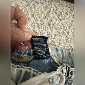 Good condition. Trendy acid wash denim joggers by S.O.N.G. feature a comfortable fit and stylish design.