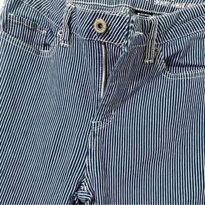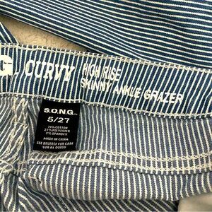 S.O.N.G Curvy High Rise Skinny Ankle Grazer Fringe Hem Pinstripe Jeans Size 5/27