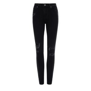 S.O.N.G. Curvy High Rise Skinny Ankle Jeans Black Distressed Women's Size 5/27