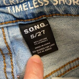S.O.N.G Junior Girls Light Denim Cut-off Criss Cross Timeless Shorts Sz 5/27