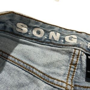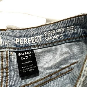 SONG Juniors 5 Light Wash Distressed Denim Jean Super High Rise Shorts R1