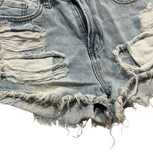 SONG Juniors 5 Light Wash Distressed Denim Jean Super High Rise Shorts