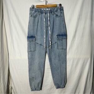 S.O.N.G Junior’s Cargo Denim Joggers Size 5/27 Drawstring Elastic Waist Pants
