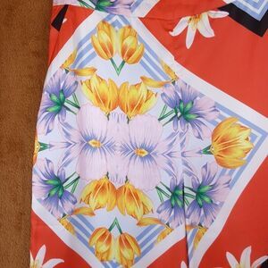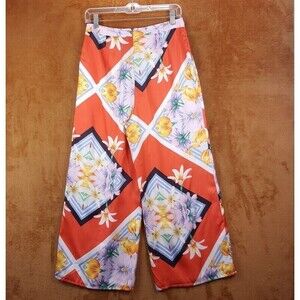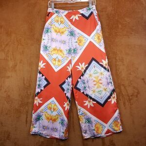 SONG OF STYLE Pants Womens Medium Red Floral Scarf Crop Wide Leg Tropical GREER