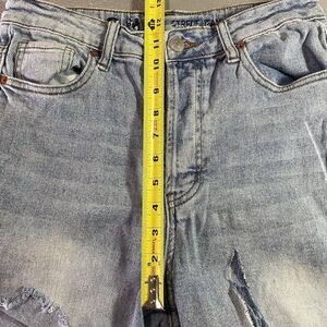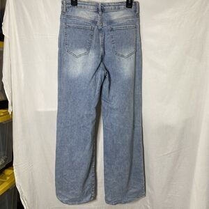 S.O.N.G. STREET Denim Jeans Wide Leg Button Fly Distressed Ripped Women 7 Blue