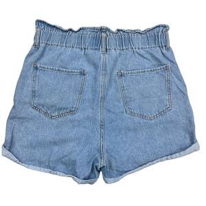 SONG Shorts Women's Large Button Fly Elastic Waist Blue Denim Jean Shorts